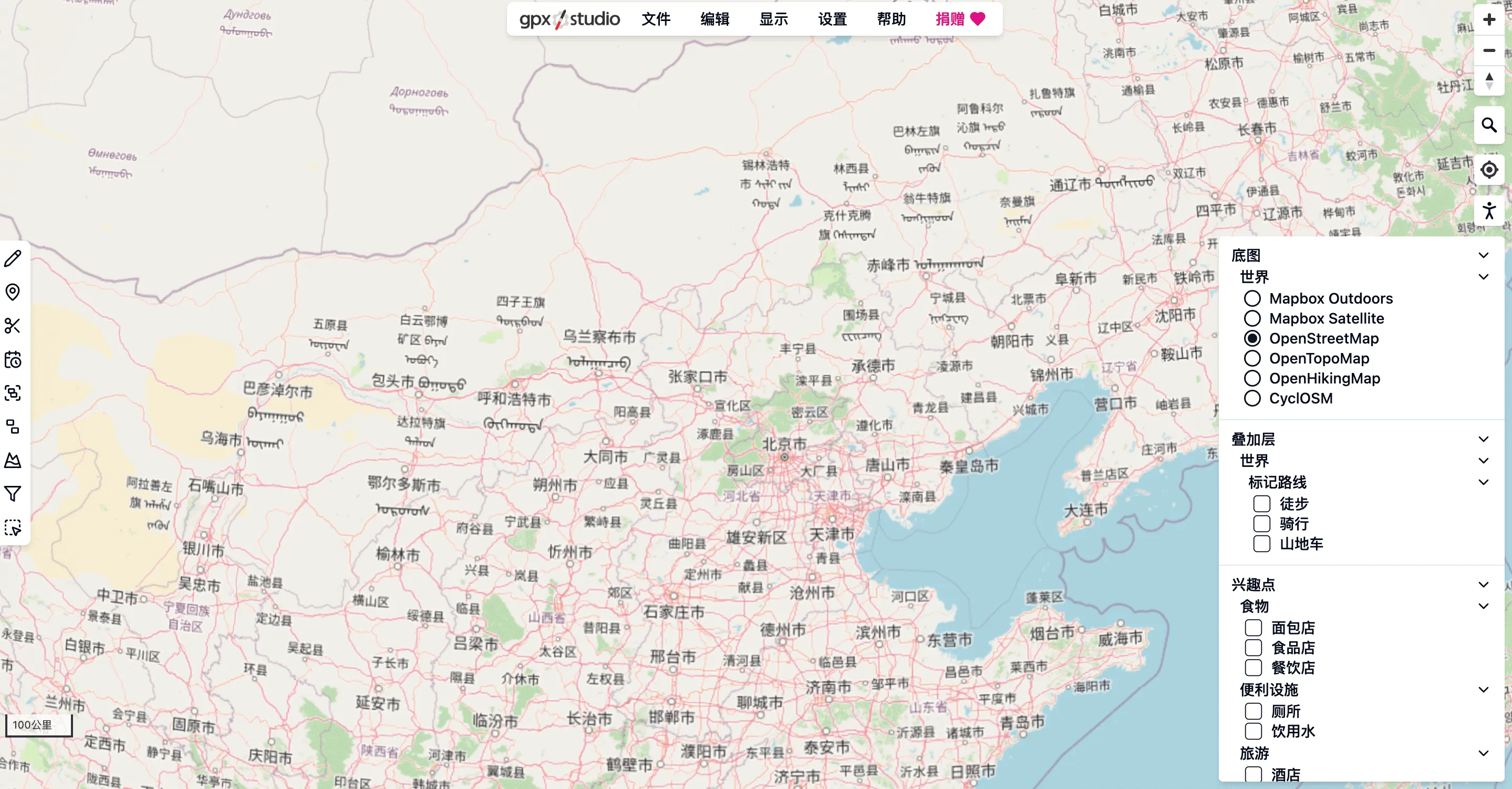 1. 在 GPX Studio 中选择 OpenStreetMap 作为底图