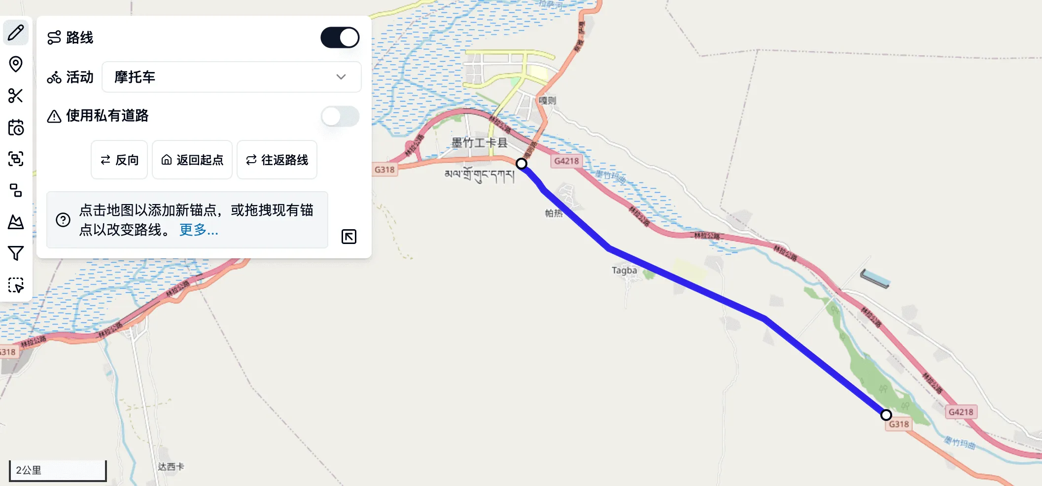 选择起始点以后,他会自动规划出一条轨迹。如果规划的轨迹不符合实际情况,可以通过减少两点之间的距离来调整轨迹的形状。